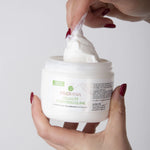 Acqua, Cetyl alcohol, Ethylhexyl stearate, Caprylic/capric triglyceride, Ceteareth-12, Cetyl palmitate, Octyldodecanol, Myristyl myristate, Butyrospermum parkii butter, Glycerin, Phenoxyethanol, Myristyl laurate, Dimethicone, Allantoin, Imidazolidinyl urea, Lecithin, Parfum, Ethylhexylglycerin, Sedium dehydroacetate, Phosphatidylcholine, Propylene glycol, Tetrasodium glutamate diacetate, Aesculus hippocastanum seed extract, Centella asiatica leaf extract, Betula alba leaf extract, Chlorella pyrenoidosa extract, Daucus carota sativa root extract, Equisetum arvense leaf extract, Fucus vesiculosus extract, Hedera helix extract, Humulus lupulus extract, Rosmarinus officinalis leaf extract, Salvia officinalis leaf extract, Trigonella foenum graecum seed extract.