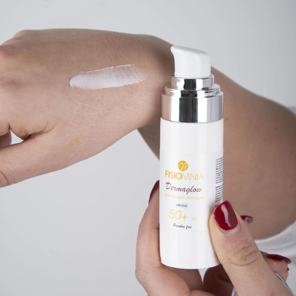 Scopri Dermaglow SPF 50, la tua nuova alleata di bellezza che unisce la sicurezza di un filtro solare elevato all'efficacia di una cura anti-age in un'unica formula innovativa. Progettata per chi non vuole rinunciare alla protezione quotidiana senza appesantire la pelle.